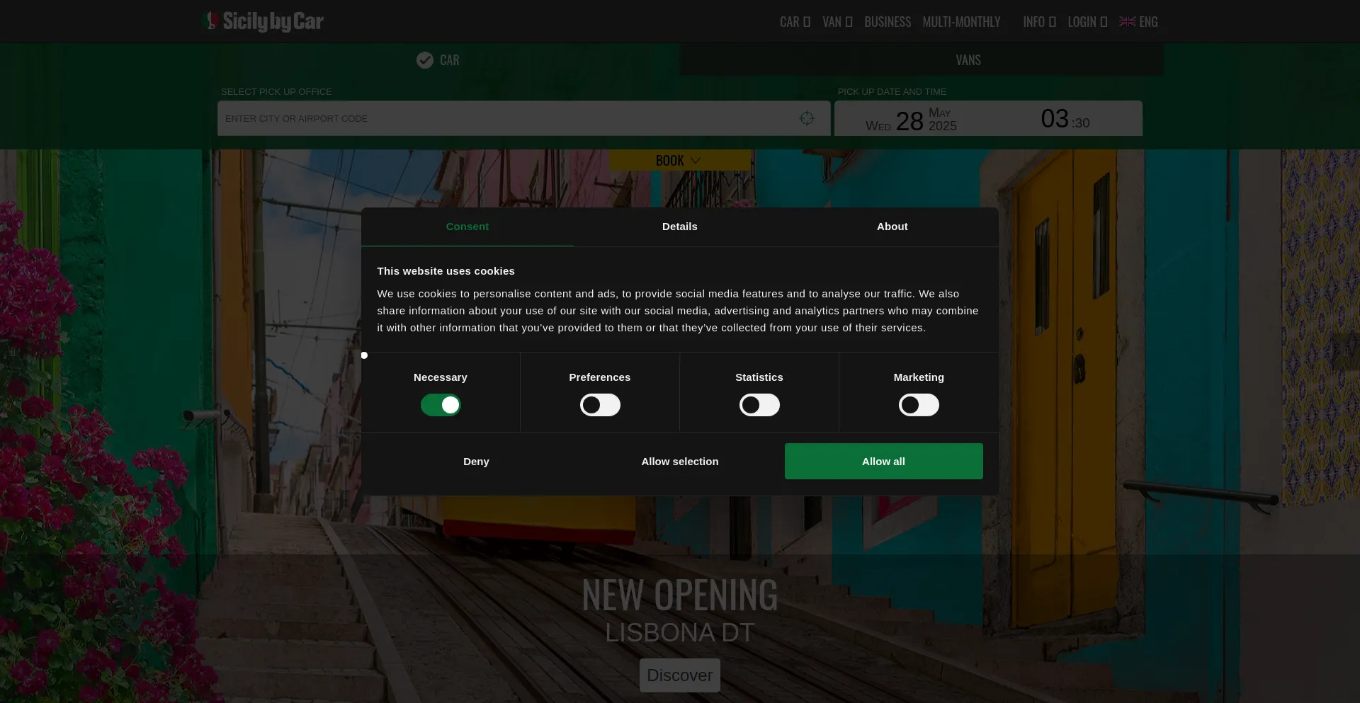 该网站实现符合GDPR或CCPA等隐私法规的cookie同意机制。这表明 sicilybycar.com 遵守数据保护标准并为用户提供对个人数据收集实践的控制。