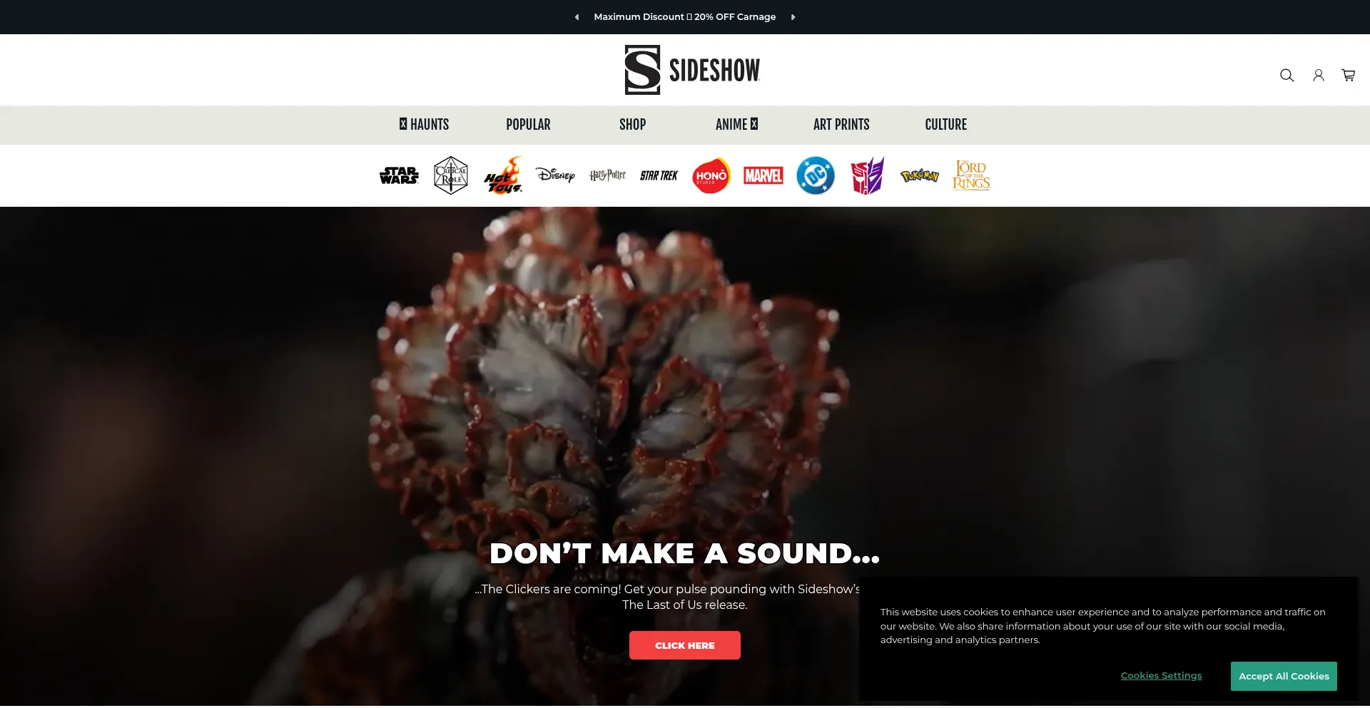 该网站实现符合GDPR或CCPA等隐私法规的cookie同意机制。这表明 sideshow.com 遵守数据保护标准并为用户提供对个人数据收集实践的控制。