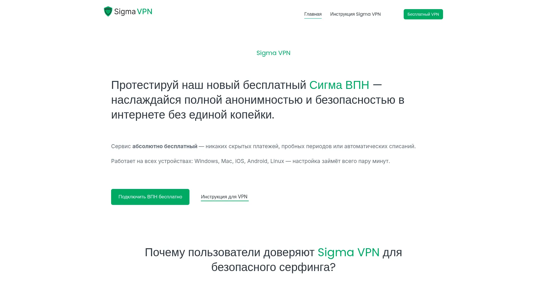 Sigma VPN - бесплатный ВПН-сервис. Сигма ВПН - лучшее решение для всех Платформ: Windows, Mac, iOS, Android, Linux или ...