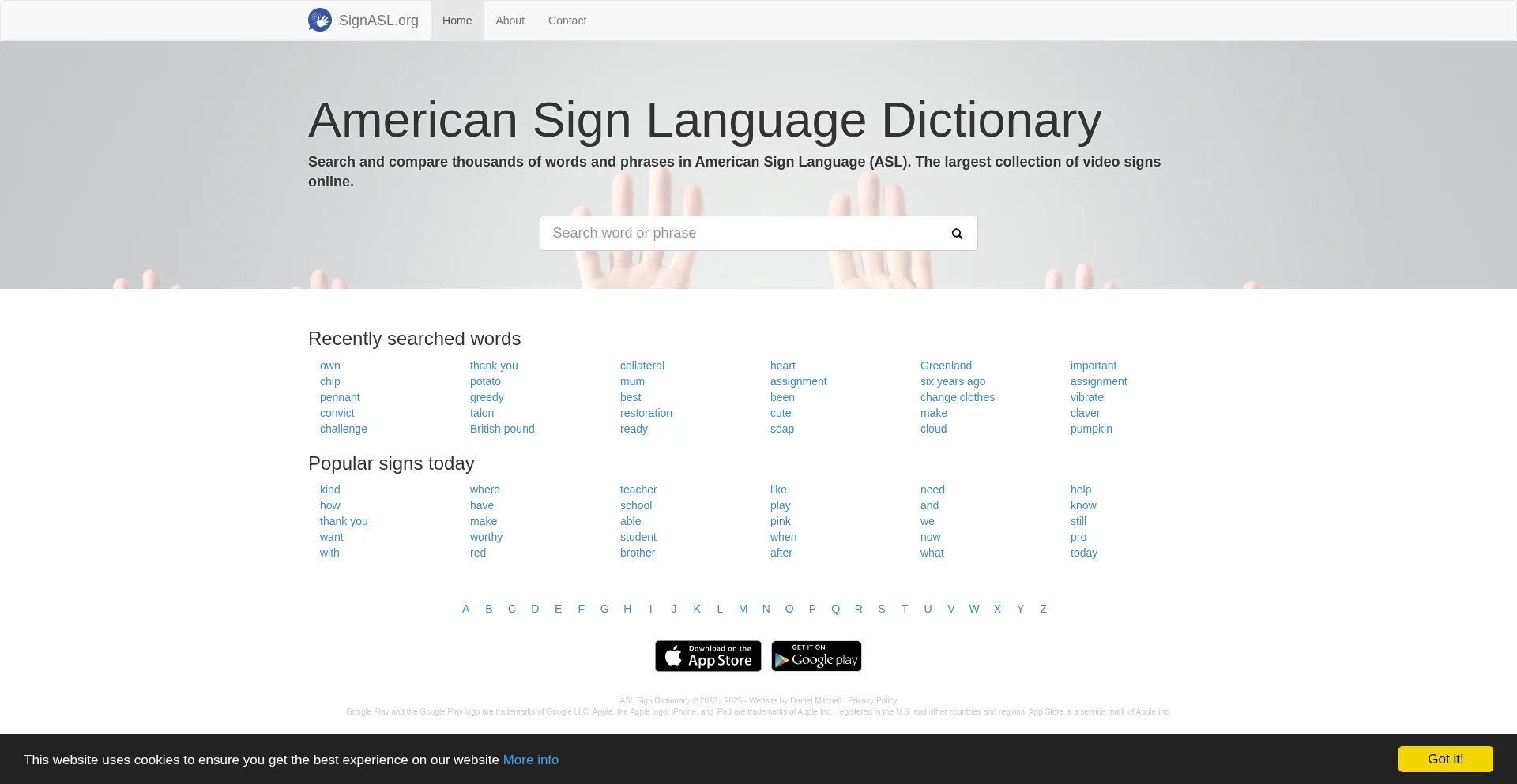 Search and compare thousands of words and phrases in American Sign Language (ASL). The largest collection of video signs online.