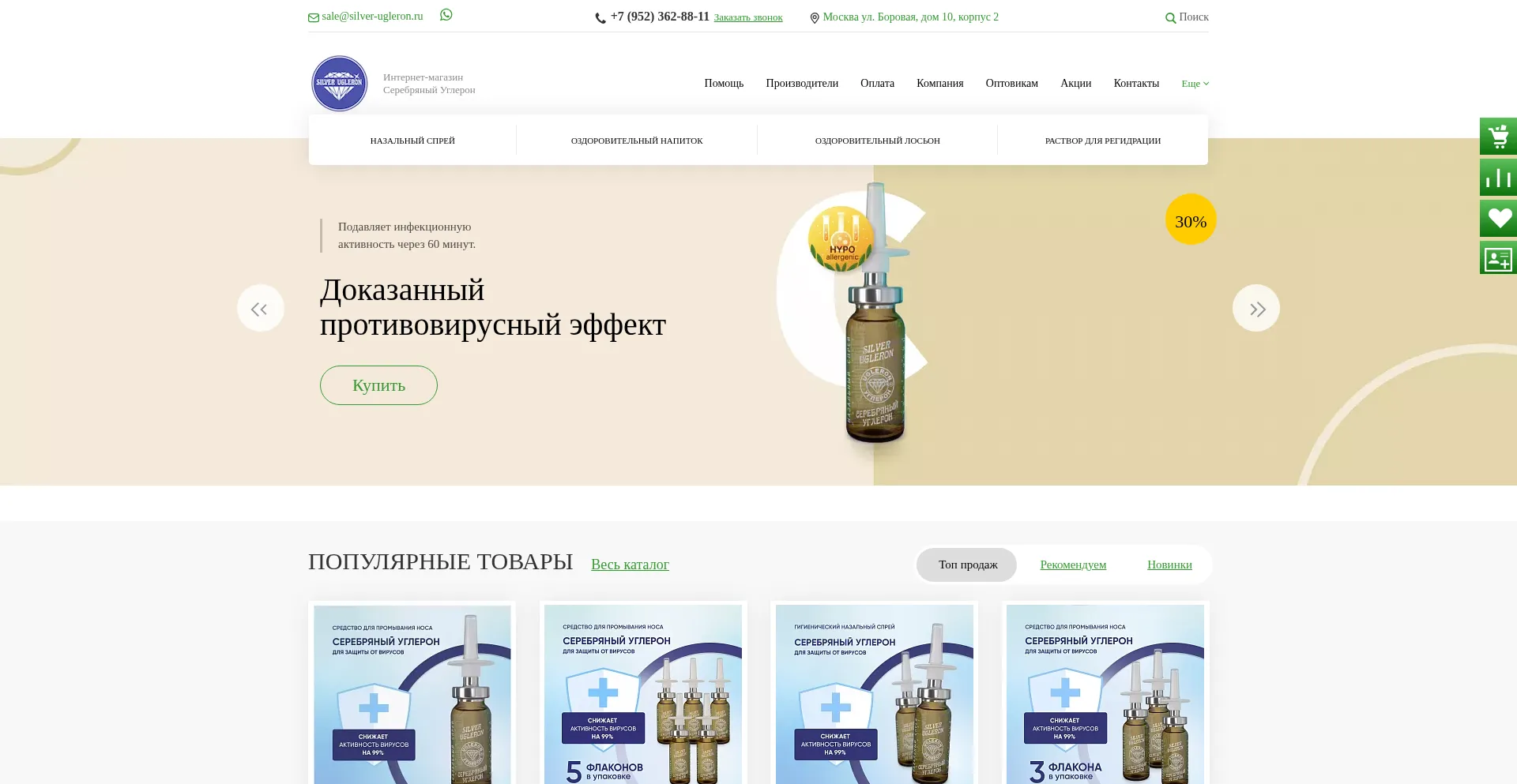 Официальный интернет-магазин Серебряный Углерон. Натуральный спрей с антимикробным эффектом. П�...