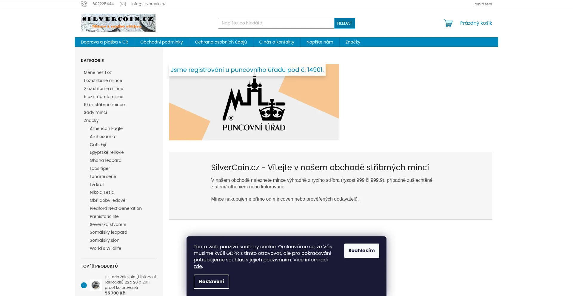 SilverCoin.cz - Vítejte v našem obchodě stříbrných mincí. V našem obchodě naleznete mince výhradně z ryzího stříbra (ryzost 999 či 999.9), případně zušlechtě...