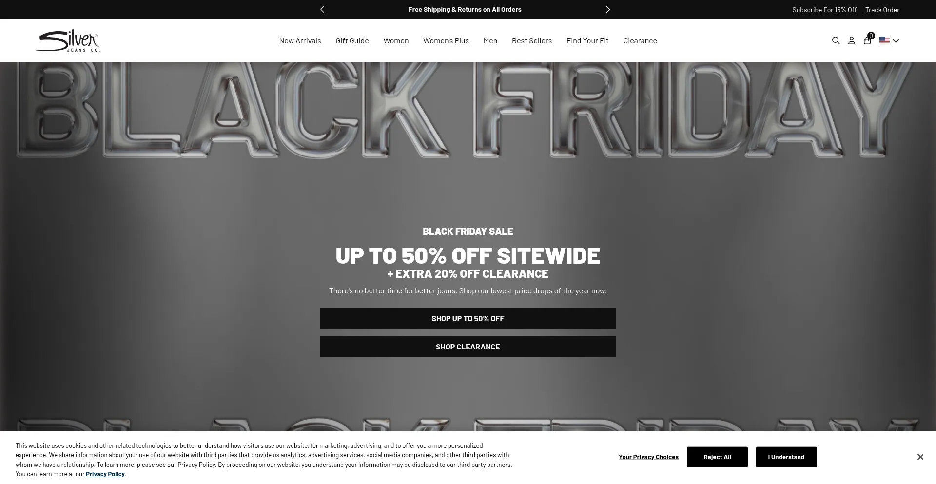 该网站实现符合GDPR或CCPA等隐私法规的cookie同意机制。这表明 silverjeans.com 遵守数据保护标准并为用户提供对个人数据收集实践的控制。