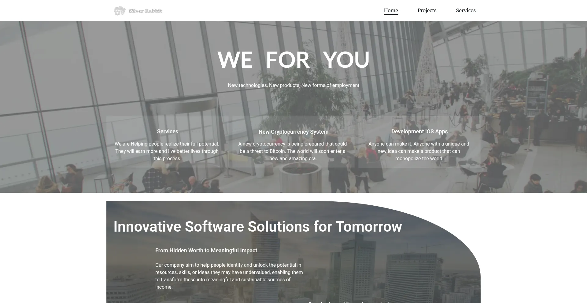 Silver Rabbit LLC specializes in software development, including iOS apps, AI-driven websites, and cryptocurrency systems. Our startup is dedicated to providing exceptional cust...
