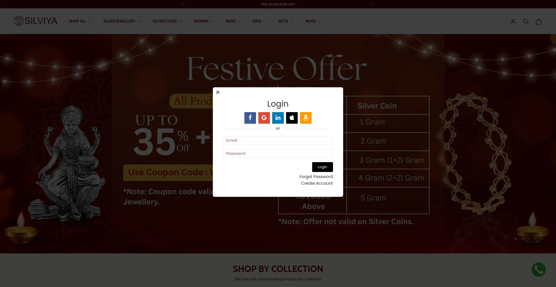 Shop 925 silver jewellery, Idols & 999 pure silver coins at Silviya. Certified purity, timeless designs & perfect gifts for every festival and occasion.