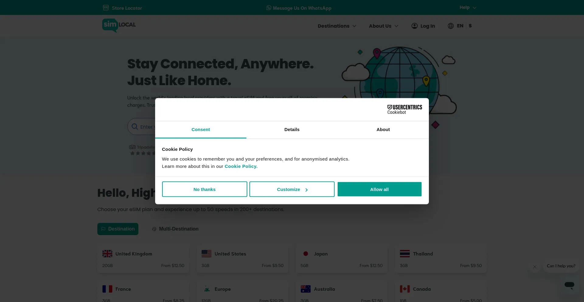 该网站实现符合GDPR或CCPA等隐私法规的cookie同意机制。这表明 simlocal.com 遵守数据保护标准并为用户提供对个人数据收集实践的控制。