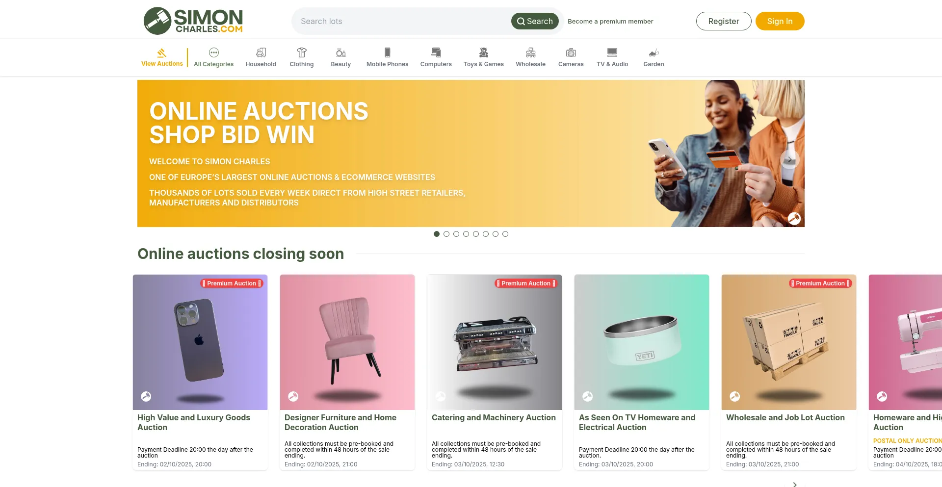 Bid online for sofas, furniture, mobile phones, tech, kitchen appliances and more at simoncharles.com