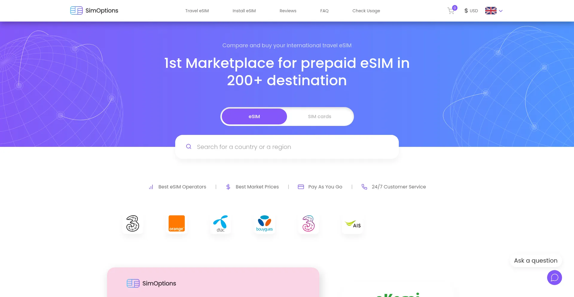 SimOptions - Prepaid eSIMs for 200+ Destinations