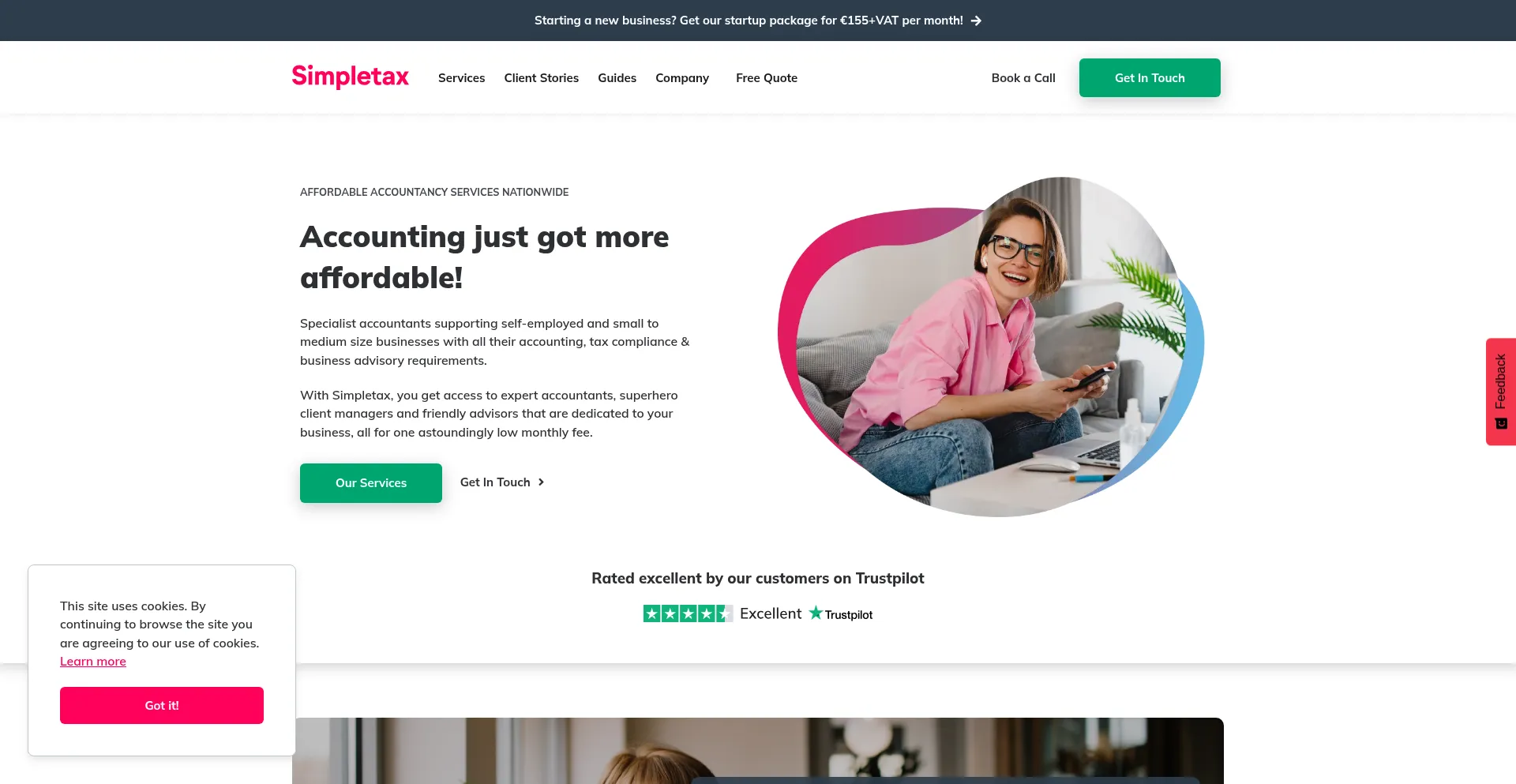 simpletax.ie 使用 Google Tag Manager 在其网站上添加和更新追踪代码(标签)。