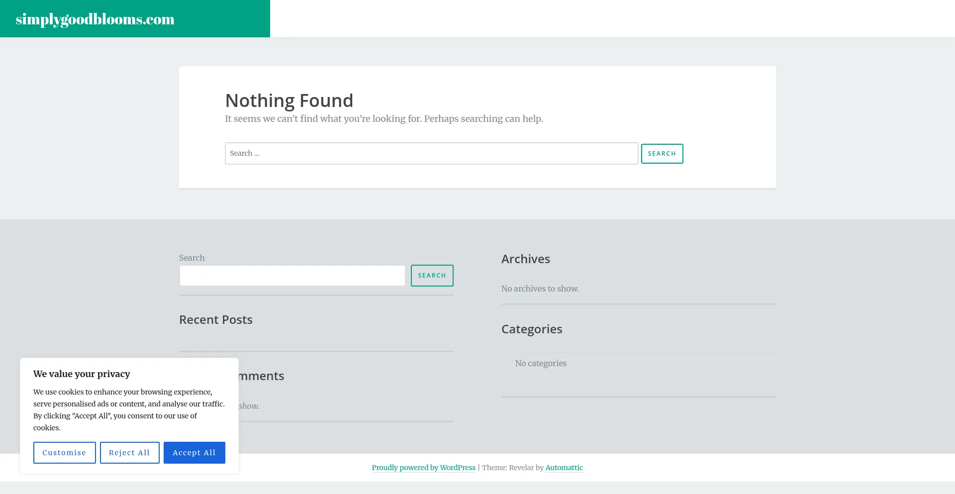 该网站实现符合GDPR或CCPA等隐私法规的cookie同意机制。这表明 simplygoodblooms.com 遵守数据保护标准并为用户提供对个人数据收集实践的控制。