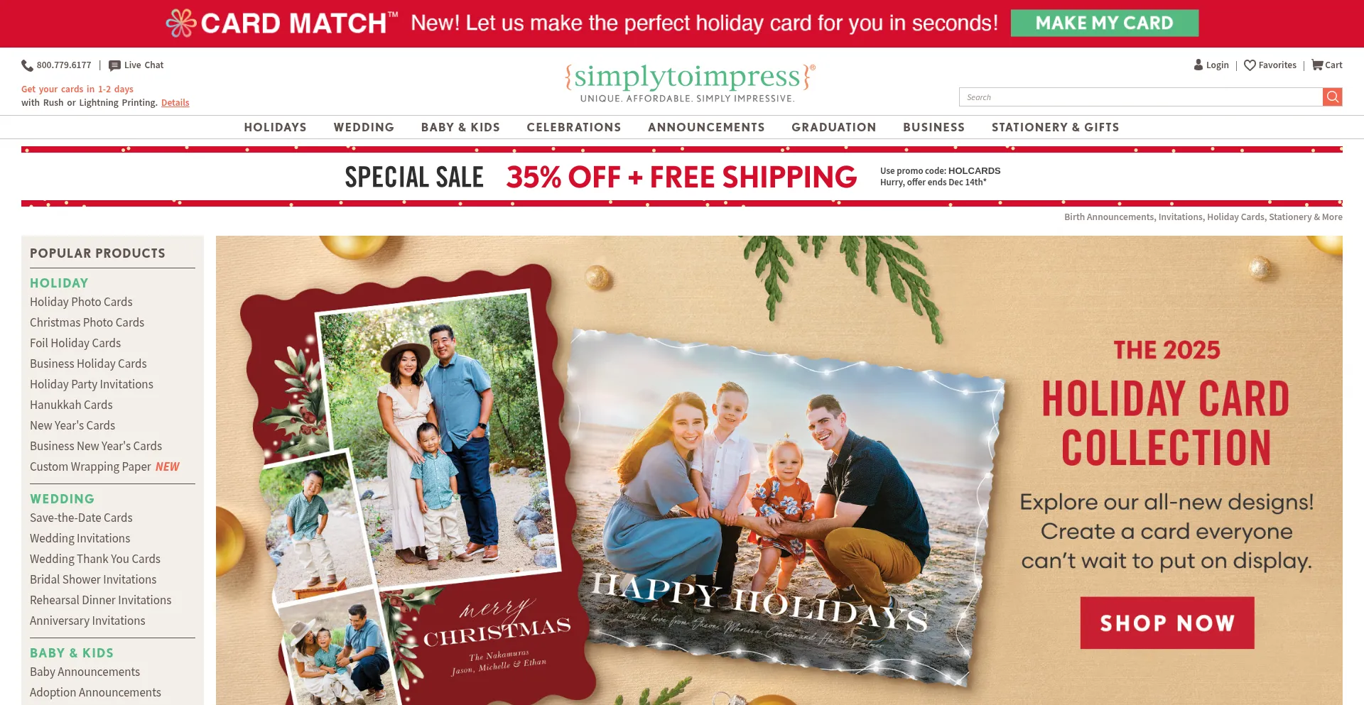 Design creative birth announcements, invitations, and holiday cards to share with your loved ones! Choose from Simply to Impress' unique collections of cards!