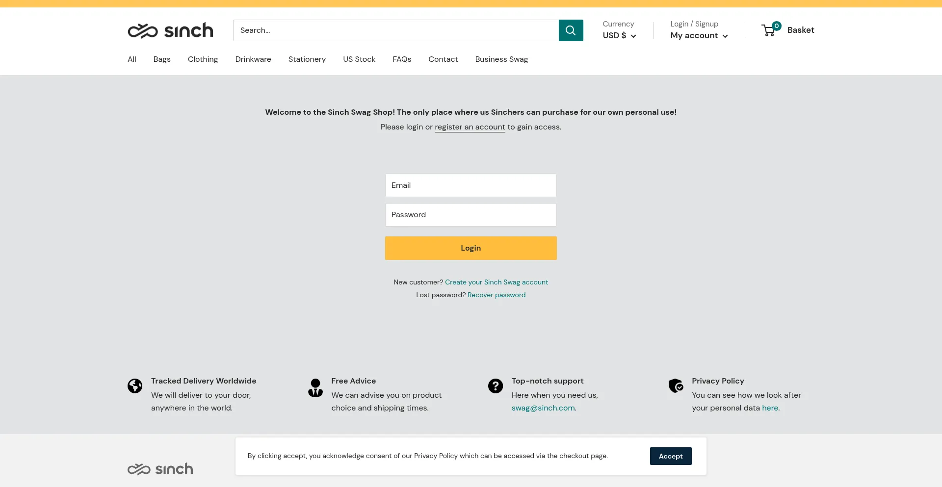 该网站实现数据收集表单,请求个人信息,包括姓名、电子邮件地址、电话号码或其他敏感详细信息。用户应验证 sinch-swag.com 的合法性并在提交个人数据前查看隐私政策。