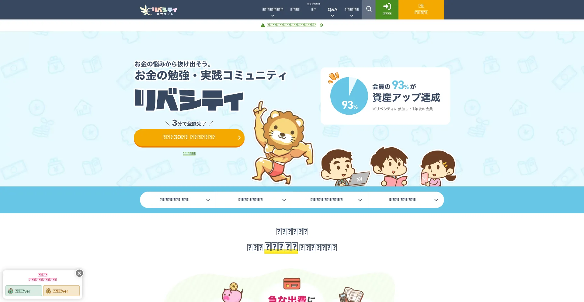 リベシティは、資産形成をサポートするオンラインコミュニティです。貯金・老後・教育費などのお金の悩みを解決する無料学習コ...