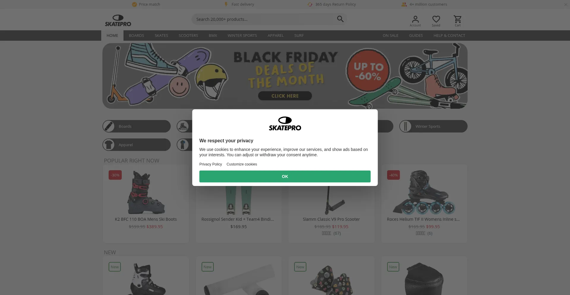 SkatePro is an online shop specializing in skates, scooters, boards, bmx, surf and winter sports. We offer 20.000+ products and a 365 days return policy.