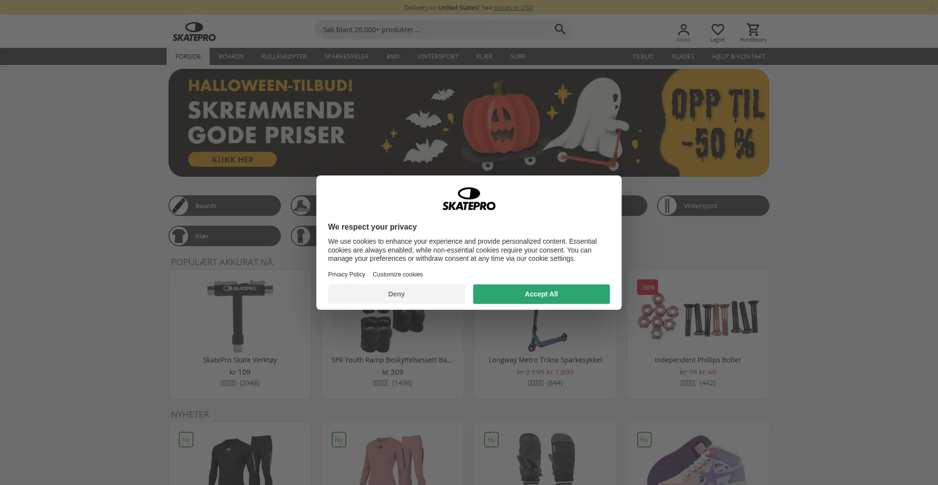 Nettbutikken SkatePro er eksperter på rulleskøyter, sparkesykler, brett, bmx, surfing og vintersport. Vi har over 20 000+ produkter og 365 dagers returrett.