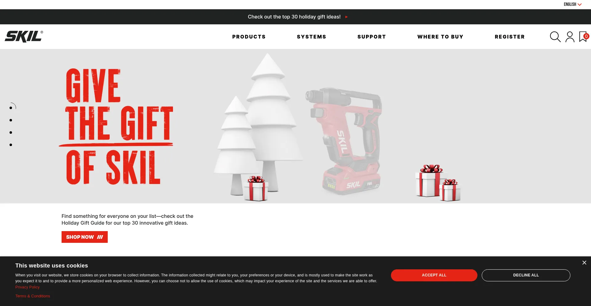 该网站实现符合GDPR或CCPA等隐私法规的cookie同意机制。这表明 skil.com 遵守数据保护标准并为用户提供对个人数据收集实践的控制。