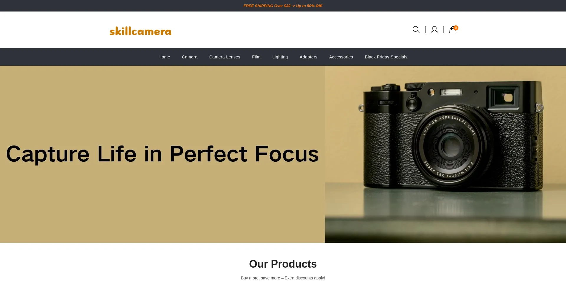 分析表明 skillcamera.com 作为电子商务平台运营,促进商品或服务的在线交易。该网站实现了购物车功能、支付处理系统和产品目录功能,这些是商业零售运营的典型特征。