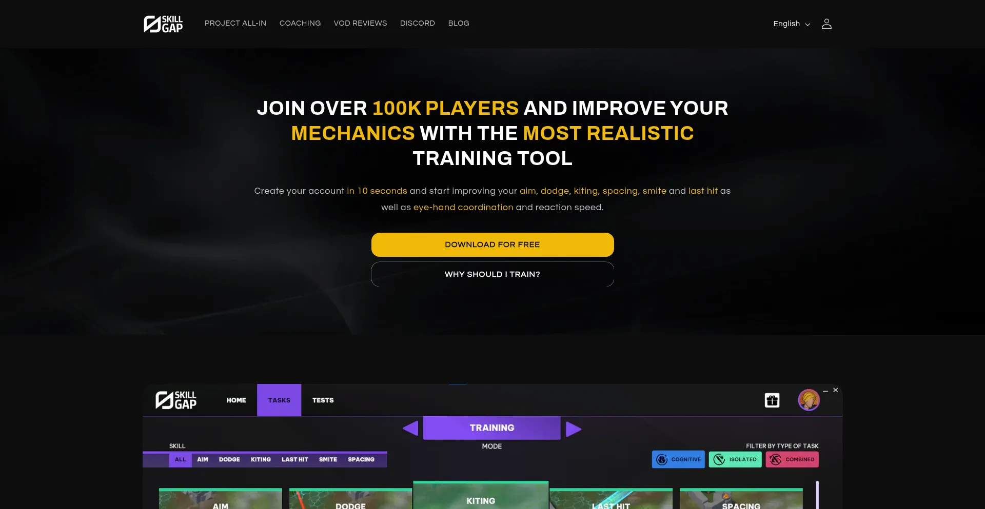 Train with us and improve your aim, dodge, kiting, last hit and spacing skills. Start now for free with three training tasks designed to build specific skills.