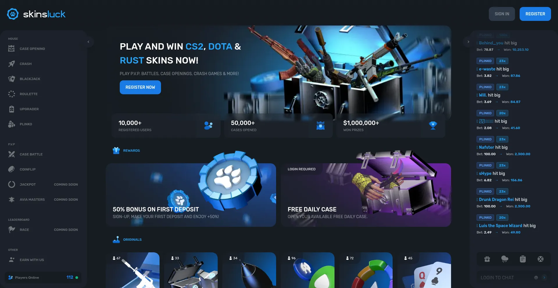 SkinsLuck is the leading CS2/CSGO skins gambling site. A trusted CSGO casino for legit skin betting games with fast withdrawals!