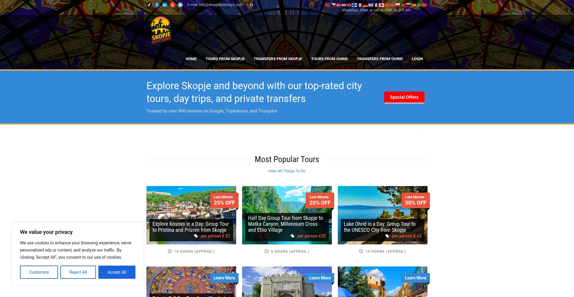 帮助保护他人,快在社交媒体上分享此页面吧!知道skopjedailytours.com的人越多,骗子就越难得逞。 通过在社交媒体上分享此页面,帮助更多人发现可靠的skopjedailytours.com吧!