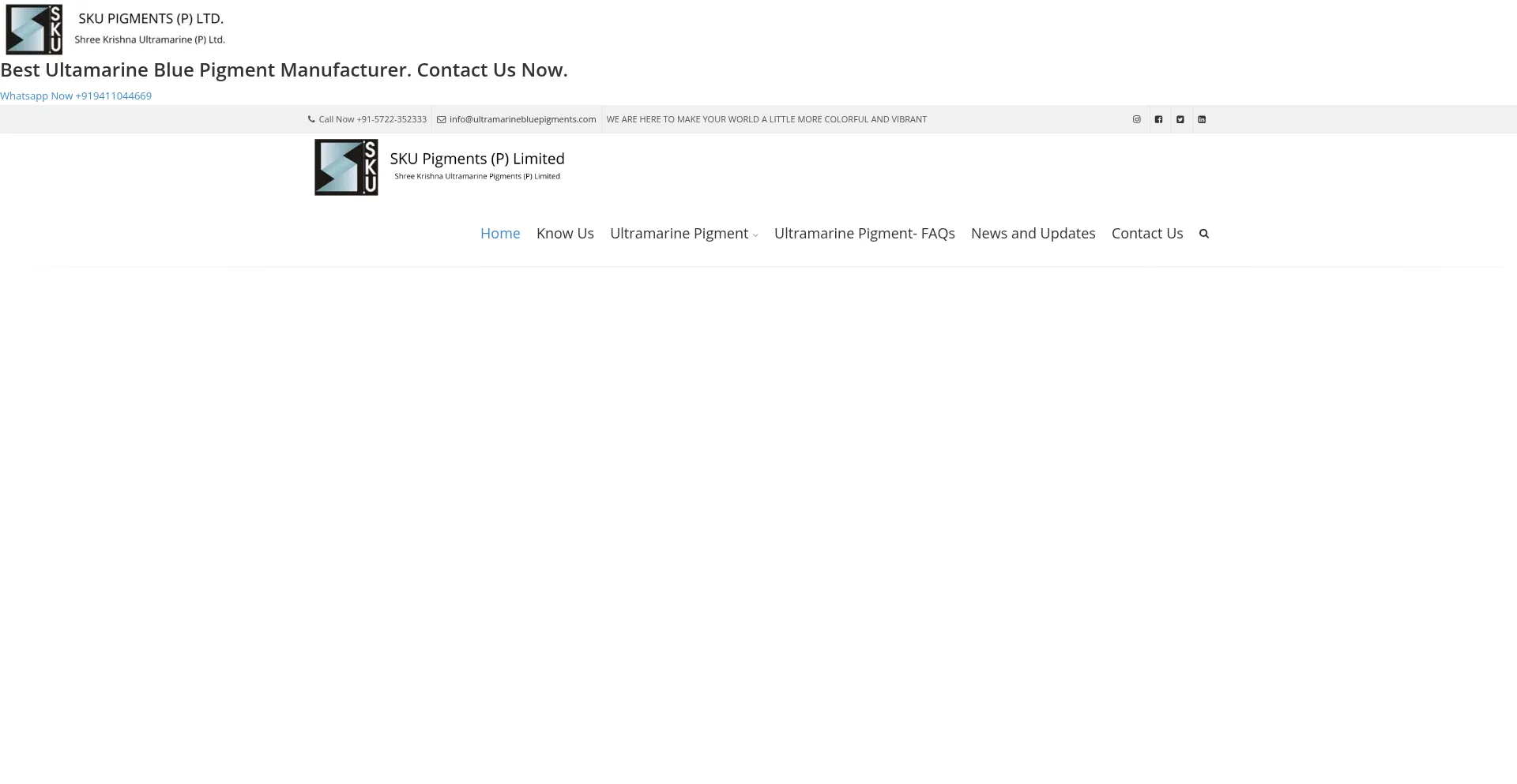 SKU Pigments P Limited is one of the leading ultramarine blue pigment manufacturers with a global approach and the highest quality standards.
