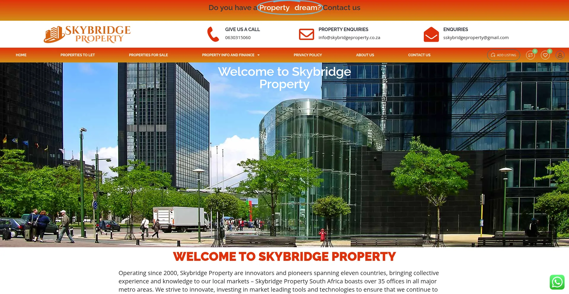 该网站实现数据收集表单,请求个人信息,包括姓名、电子邮件地址、电话号码或其他敏感详细信息。用户应验证 skybridgeproperty.co.za 的合法性并在提交个人数据前查看隐私政策。