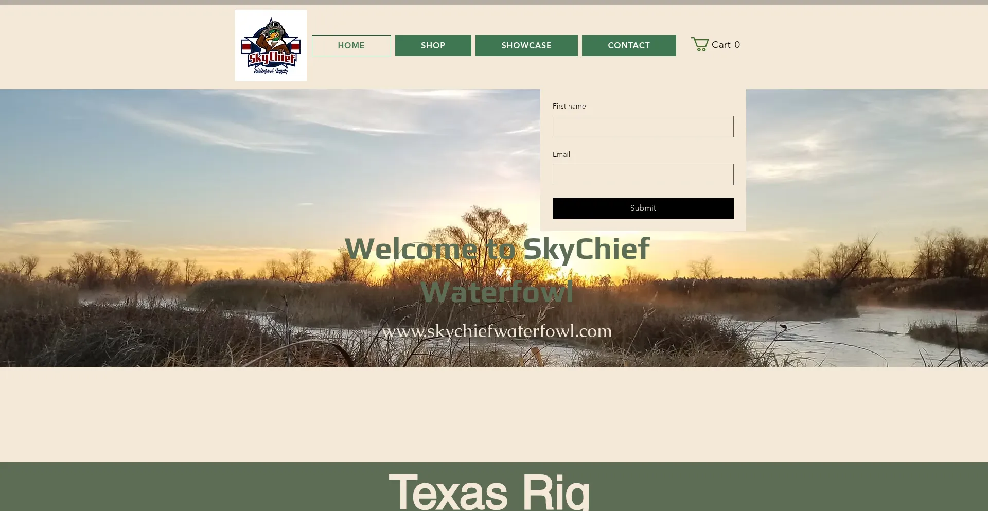 该网站实现数据收集表单,请求个人信息,包括姓名、电子邮件地址、电话号码或其他敏感详细信息。用户应验证 skychiefwaterfowl.com 的合法性并在提交个人数据前查看隐私政策。