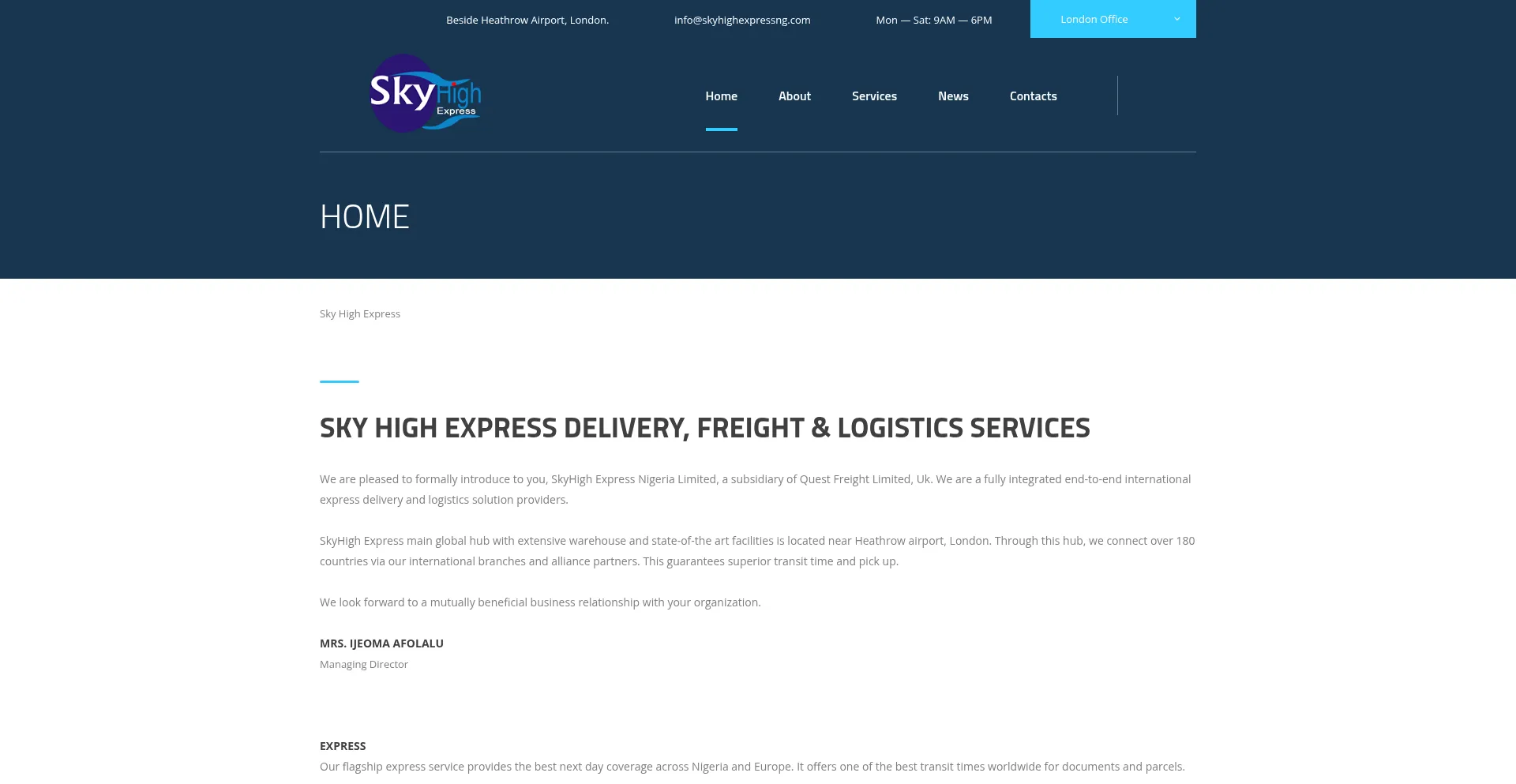 skyhighexpressng.com 使用 Bootstrap,这是一个广泛采用的开源响应式网页开发框架。Bootstrap 通过标准化组件和样式实现移动友好界面的高效创建。