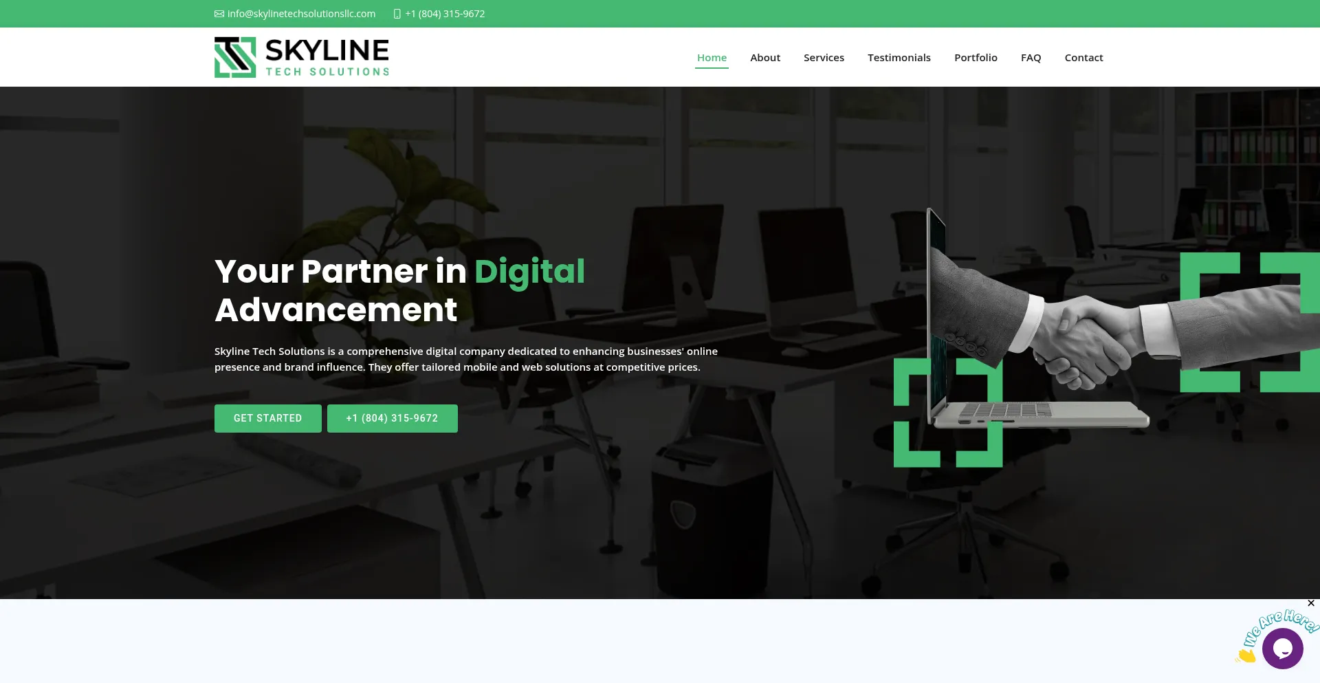该网站实现数据收集表单,请求个人信息,包括姓名、电子邮件地址、电话号码或其他敏感详细信息。用户应验证 skylinetechsolutionsllc.com 的合法性并在提交个人数据前查看隐私政策。