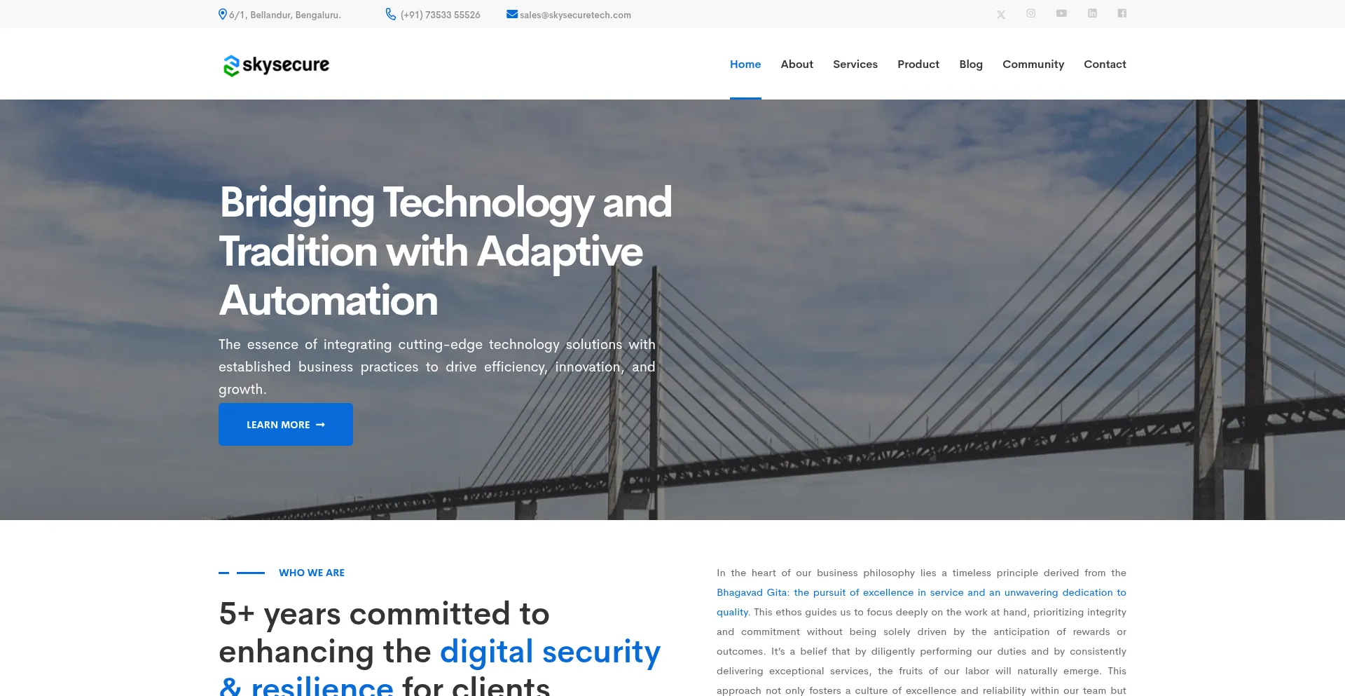 网站上存在社交媒体链接表明 skysecure.ai 在社交媒体上维护官方账户,这是可信度和参与度的积极信号。