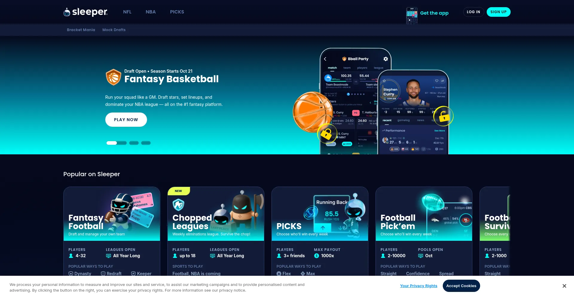 该网站实现符合GDPR或CCPA等隐私法规的cookie同意机制。这表明 sleeper.com 遵守数据保护标准并为用户提供对个人数据收集实践的控制。