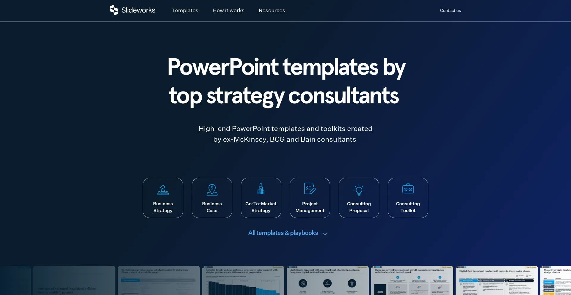 Slideworks is High-end PowerPoint templates and toolkits created by ex-McKinsey, BCG and Bain consultants - enabling teams to write and design clear presentations more effectively.