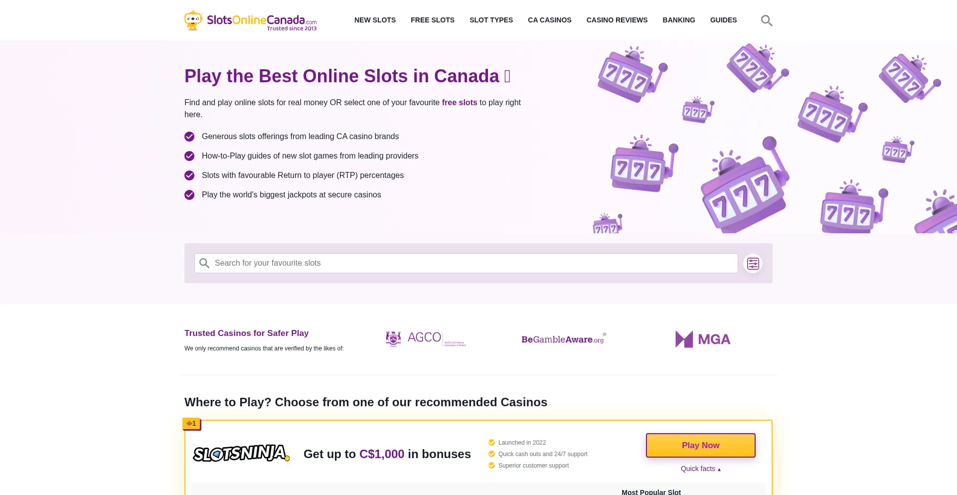 Play the best online slots for real money in 2025 + Claim generous welcome bonuses + Deposit safely in CAD + We rate Canada's top online slots casinos.