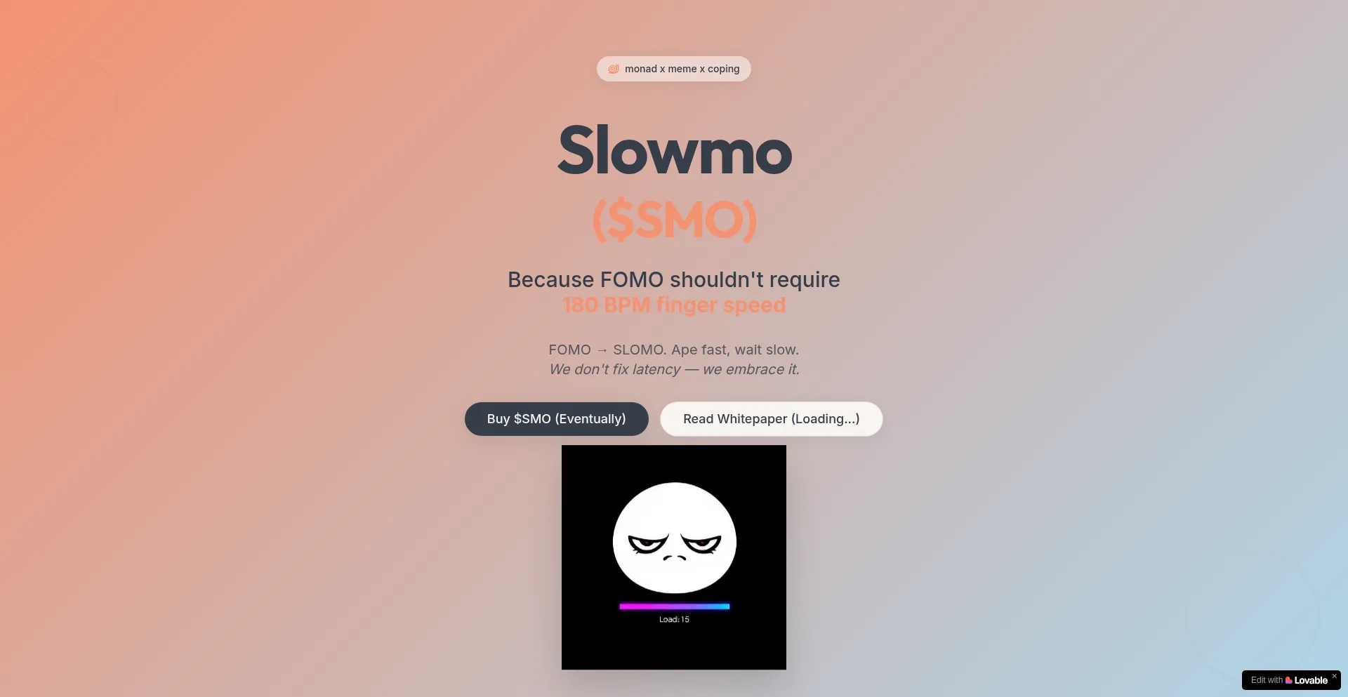 Slowmo ($SMO) — monad x meme x coping. We don't fix latency, we embrace it. FOMO → SLOMO.