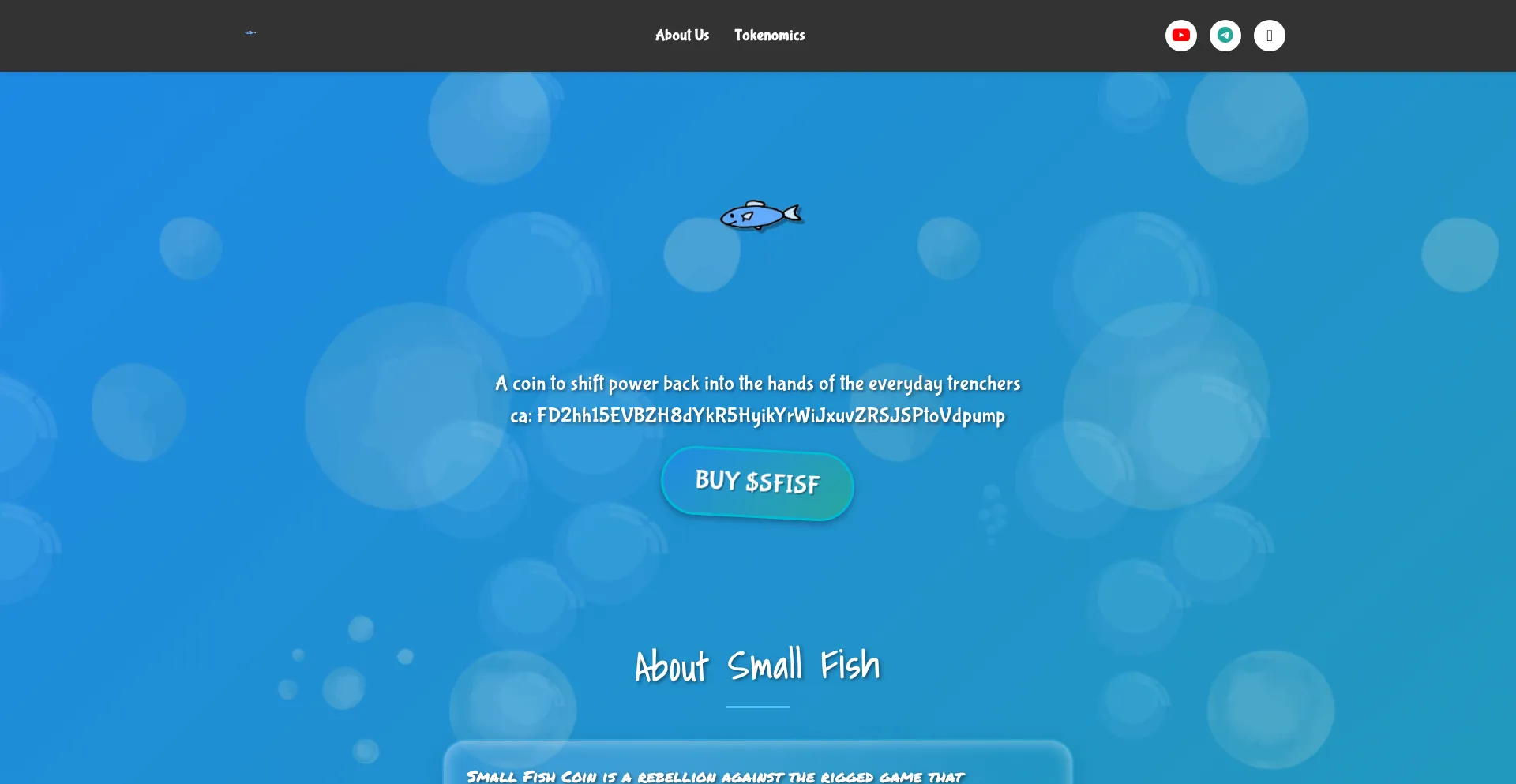 Small Fish is a memecoin for the everyday crypto enthusiast - the small fry in a big pond dominated by whales and influencers.