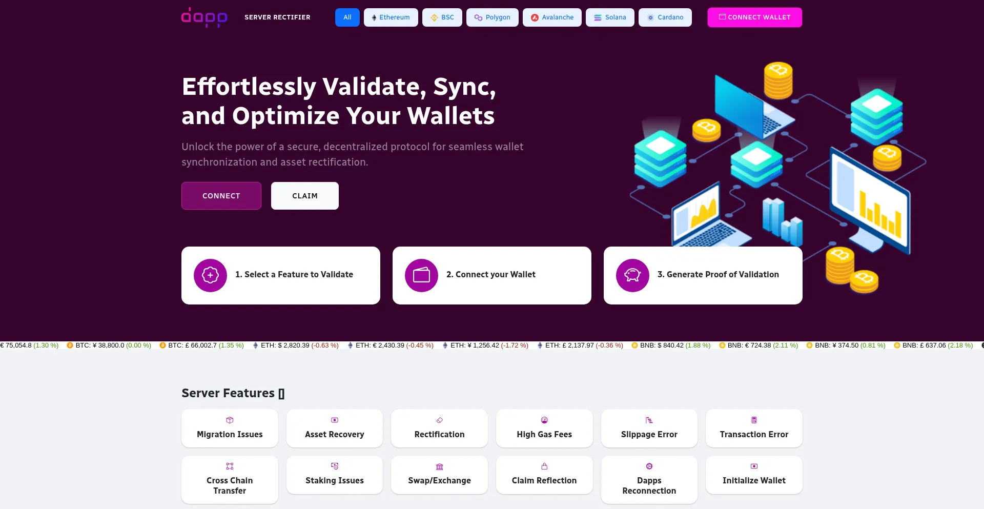 Validate, initialize, and synchronize your tokens on your wallets Open and decentralized protocol for syncing various Wallets to Dapps Secure Server