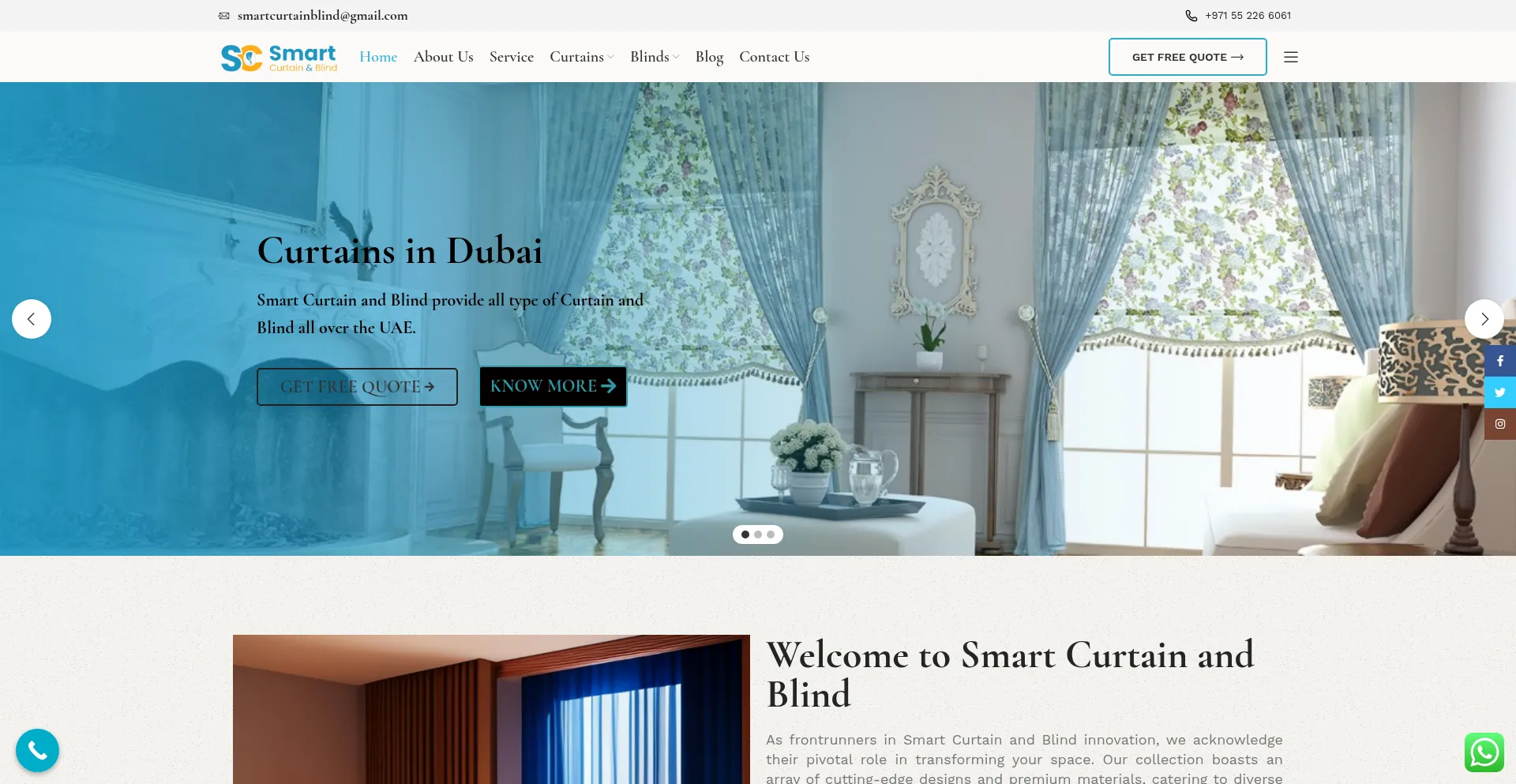 网站上存在社交媒体链接表明 smartcurtainblind.com 在社交媒体上维护官方账户,这是可信度和参与度的积极信号。