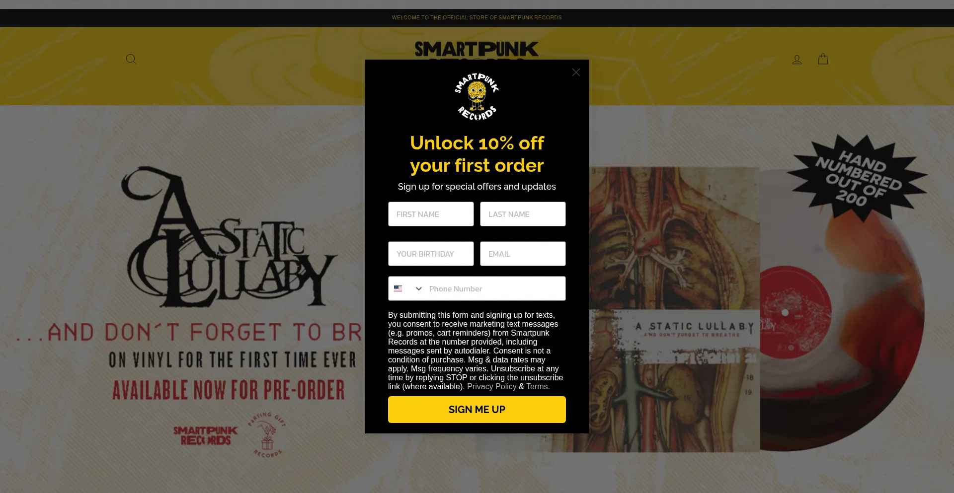 该网站实现数据收集表单,请求个人信息,包括姓名、电子邮件地址、电话号码或其他敏感详细信息。用户应验证 smartpunkshop.com 的合法性并在提交个人数据前查看隐私政策。