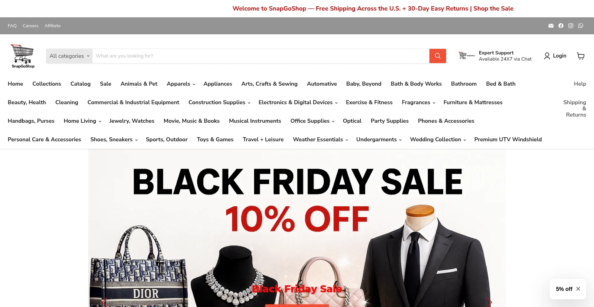 分析表明 snapgoshop.com 作为电子商务平台运营,促进商品或服务的在线交易。该网站实现了购物车功能、支付处理系统和产品目录功能,这些是商业零售运营的典型特征。