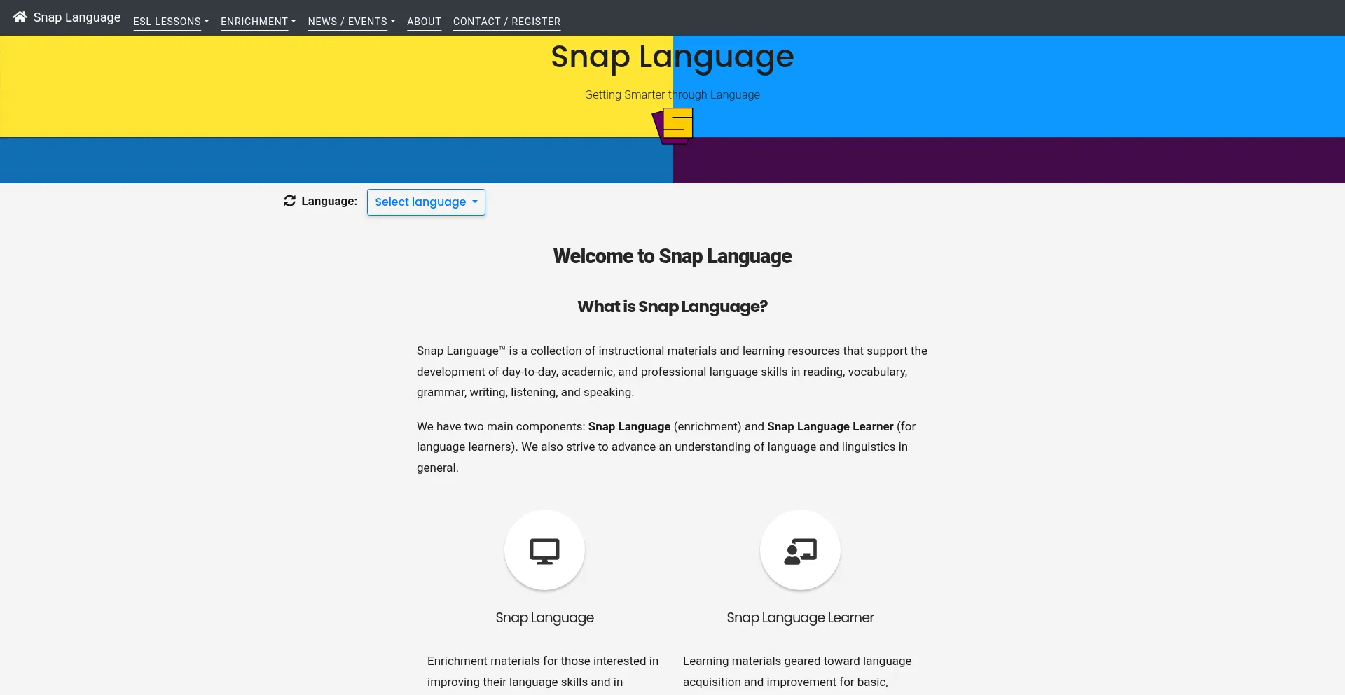 Snap Language: lessons, videos, and other language-related instructional materials for professionals and for English-language learners, including reading, vocabulary, grammar, w...
