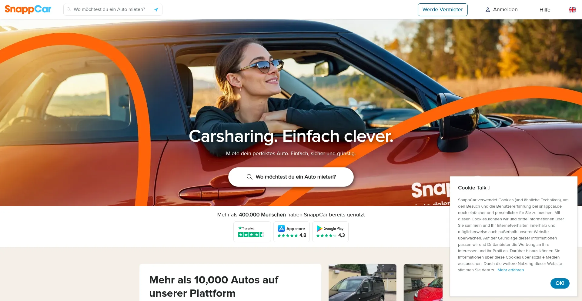 Miete ein SnappCar in deiner Nachbarschaft. Vollkasko Versicherungauch im europäischen Ausland, finanziell attraktiv, 24 Stunden Pannendienst.