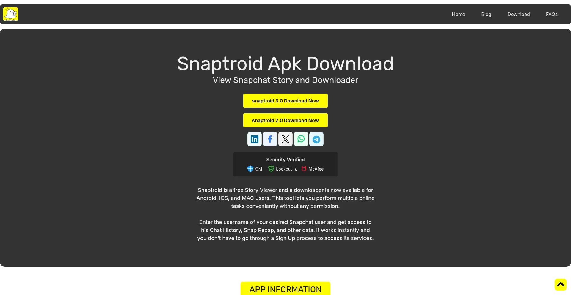 网站上存在社交媒体链接表明 snaptroid.cc 在社交媒体上维护官方账户,这是可信度和参与度的积极信号。
