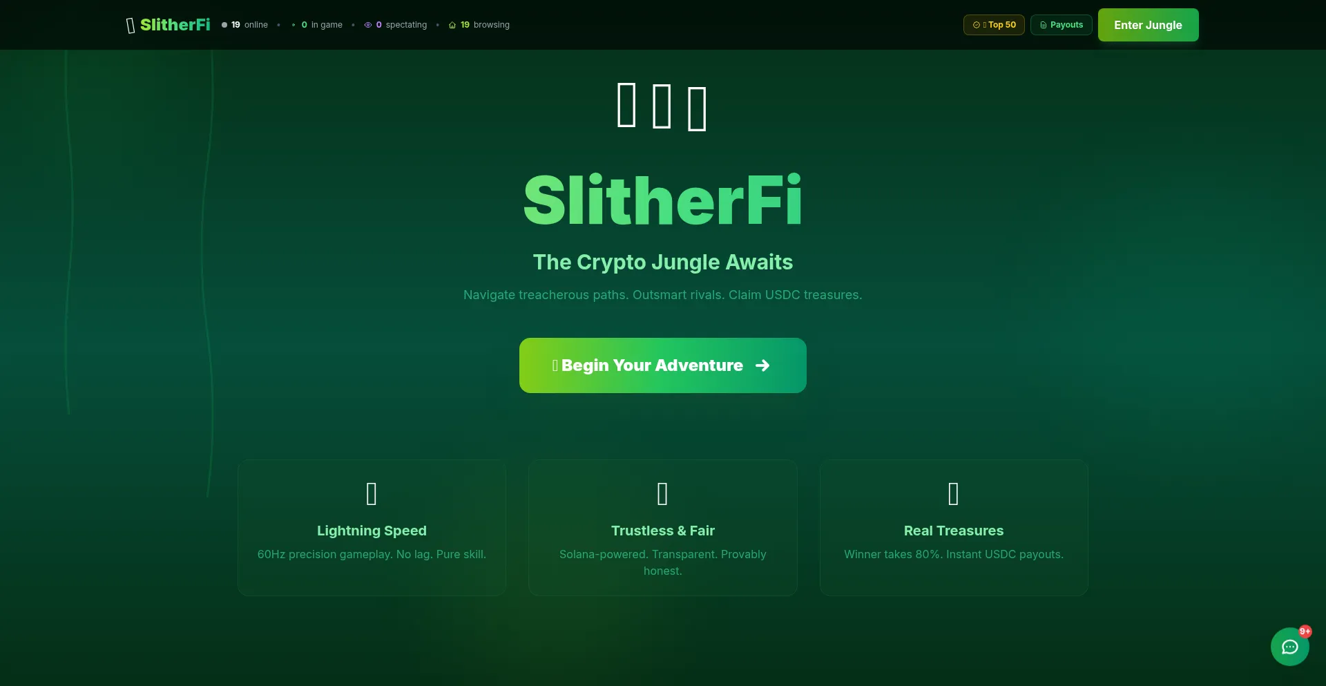 Multiplayer snake game where skill pays. Compete for real USDC prizes on Solana.