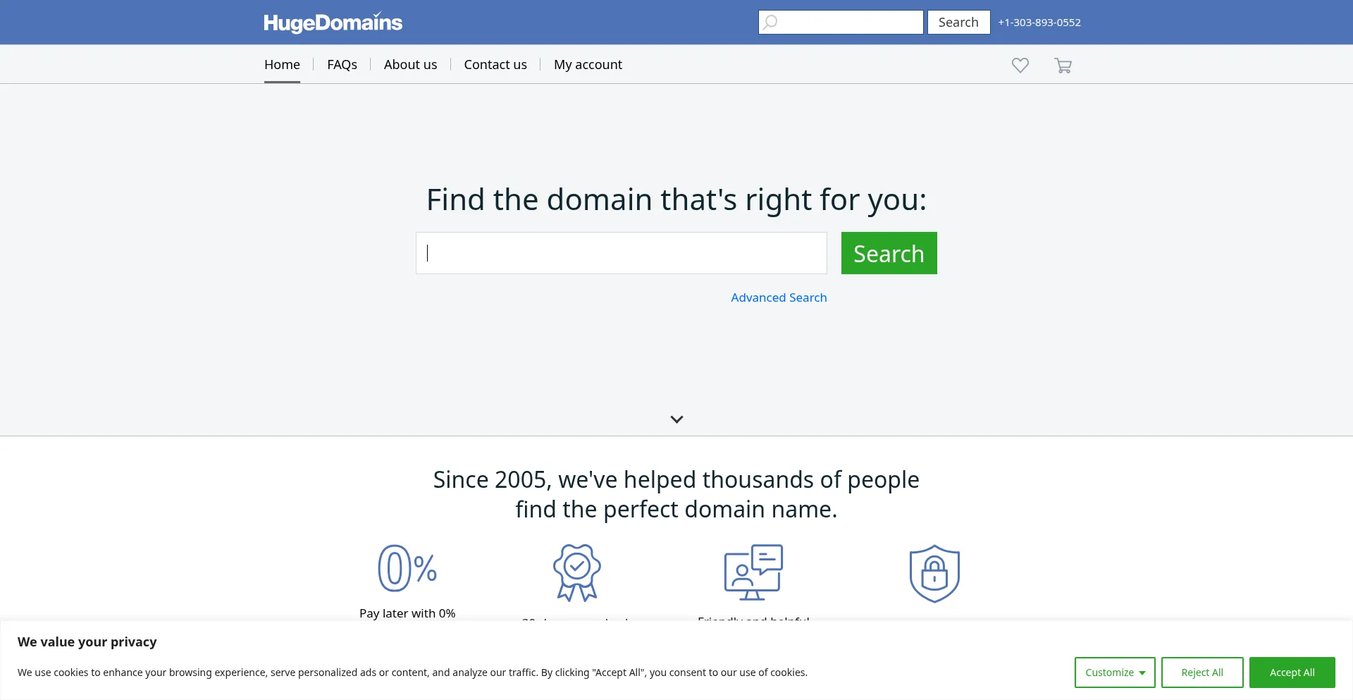 HugeDomains is the world leader in premium domains names. Find the perfect domain today.