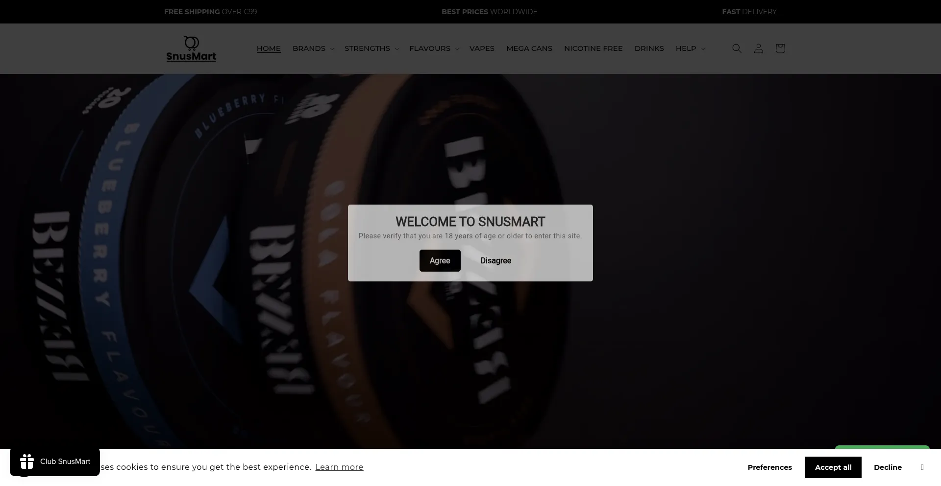 该网站实现符合GDPR或CCPA等隐私法规的cookie同意机制。这表明 snusmart.com 遵守数据保护标准并为用户提供对个人数据收集实践的控制。