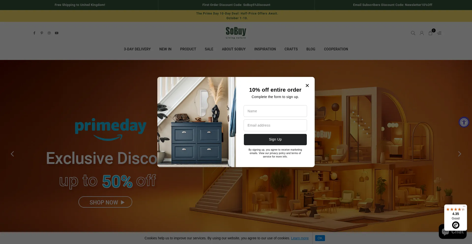 网站上存在社交媒体链接表明 sobuy.co.uk 在社交媒体上维护官方账户,这是可信度和参与度的积极信号。
