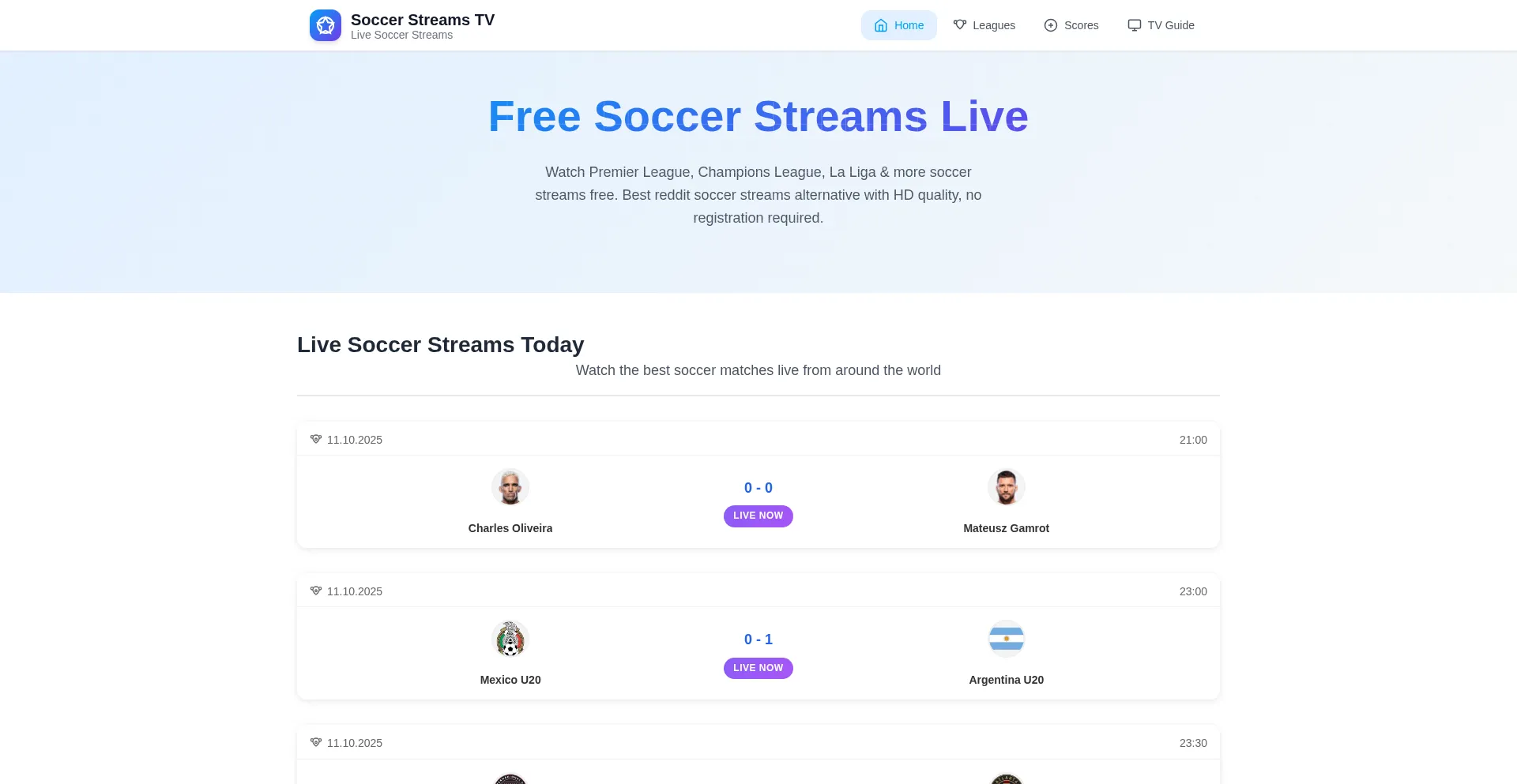 Watch free soccer streams live online! Best soccerstreams site for Premier League, Champions League, La Liga & more. Reddit soccer streams alternative with HD quality. No regist...