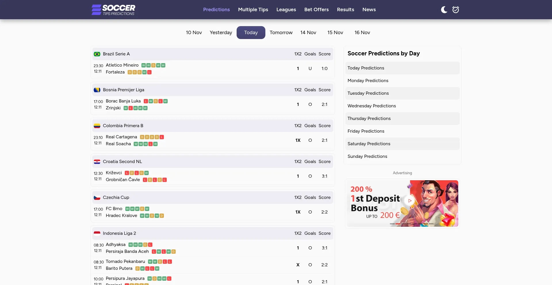 Get the latest soccer tips and predictions, see the best football predictions around the world, free analysis, football form and statistics for all events. Daily coverage.