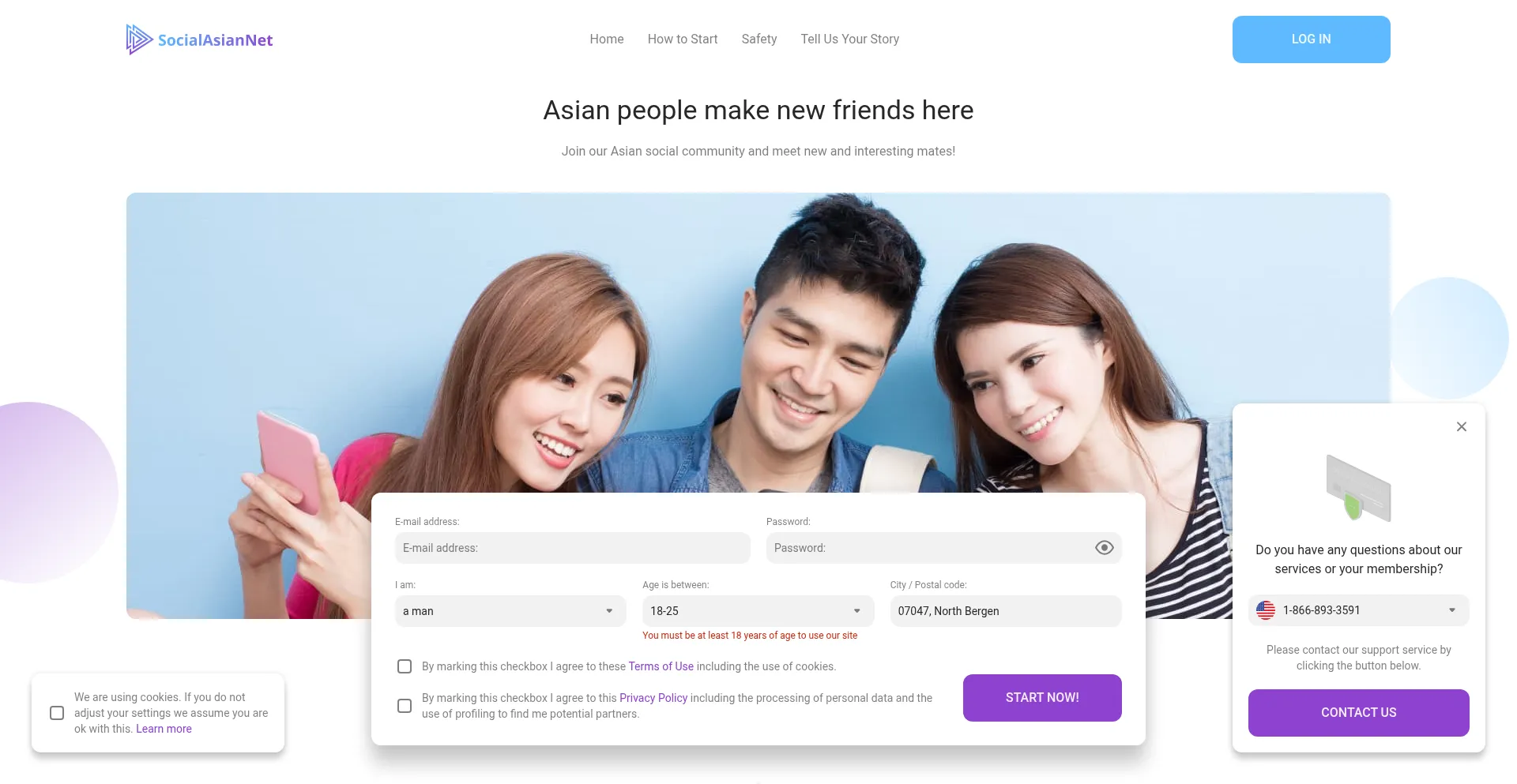 该网站实现数据收集表单,请求个人信息,包括姓名、电子邮件地址、电话号码或其他敏感详细信息。用户应验证 socialasiannet.com 的合法性并在提交个人数据前查看隐私政策。