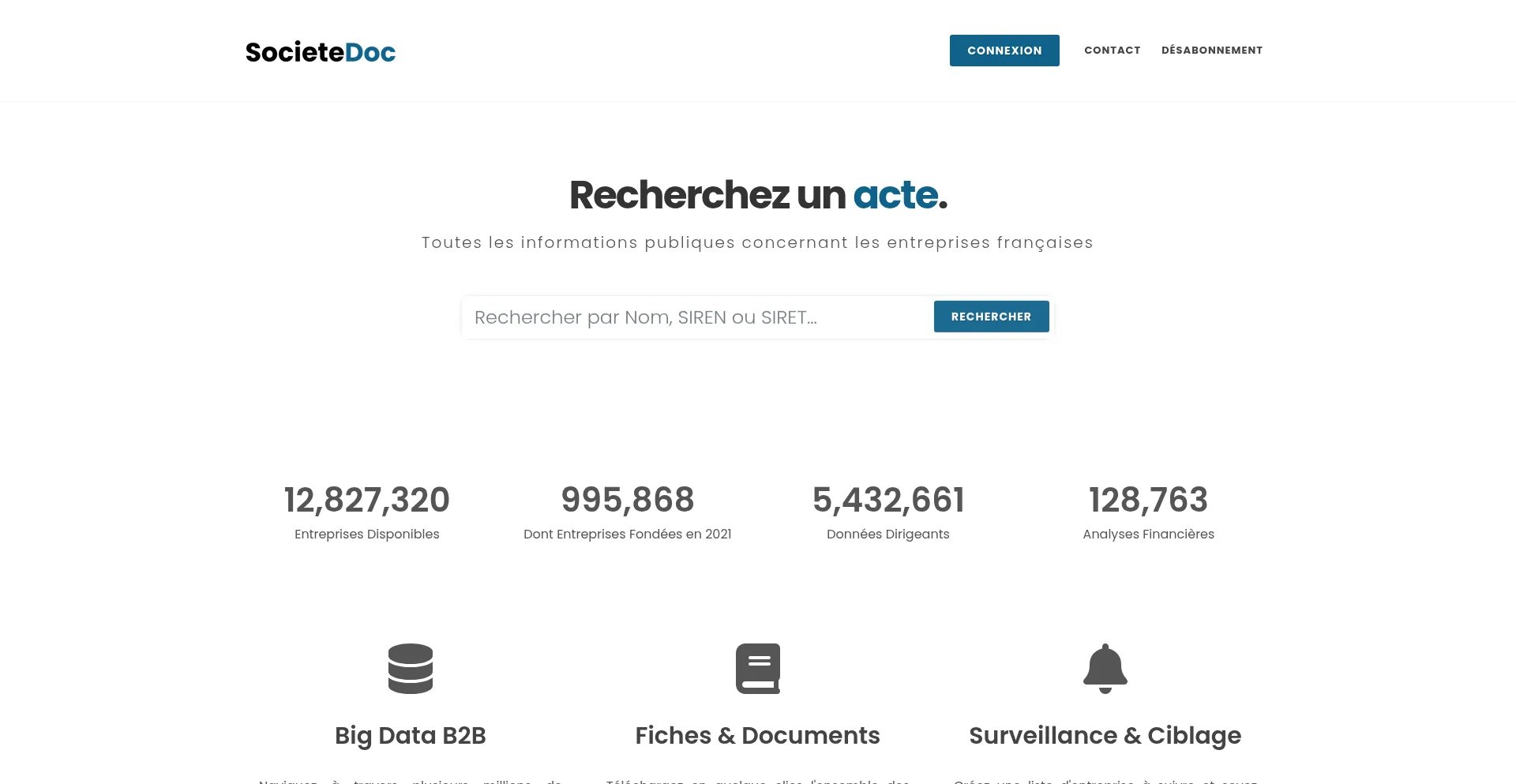 SocieteDoc, toute l'information sur les entreprises françaises. SIRET/SIREN, numéro de TVA, documents et bien plus encore.